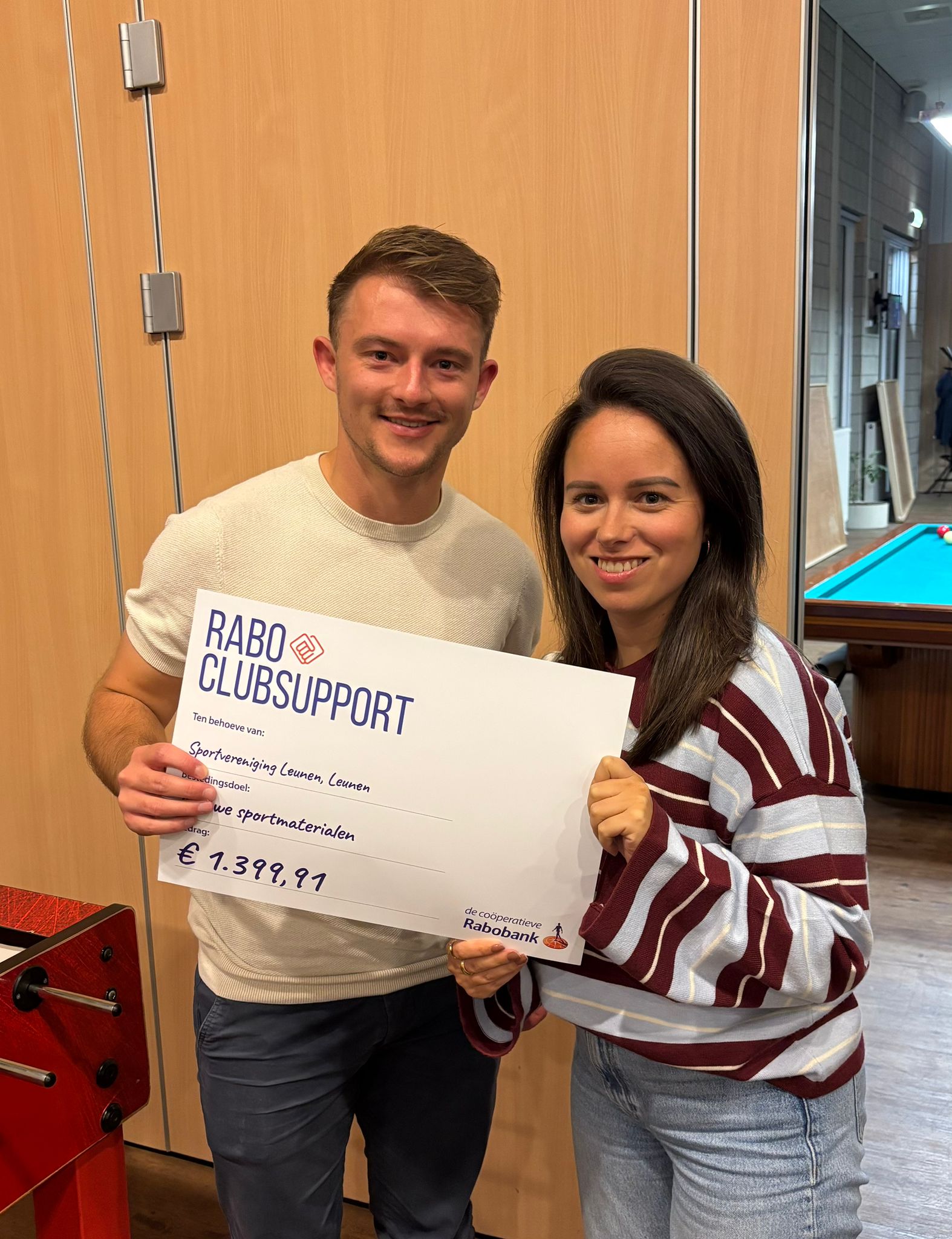 Uit handen van Femke Verhaegh van Rabobank kreeg onze penningmeester Guus Reintjes de cheque aangereikt.
